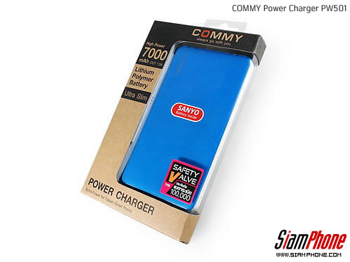 COMMY แนะนำ Power Charger PW501 แบตเตอรี่สำรองมาพร้อมความจุ 7000mAh ตัวเครื่องมีขนาดบาง น้ำหนักเบา สะดวกในการพกพาโดยที่ไม่เป็นปัญหาเรื่องน้ำหนัก โดยตัวแบตเตอรี่น้ำหนัก 165 กรัม ตัวแบตเตอรี่ผลิตโดยใช้เซลล์แบตเตอรี่ SANYO จากประเทศญี่ปุ่น อีกทั้ง ยังมีระบบ Safety Valve ป้องกันแบตเตอรี่ระเบิด จึงมั่นใจได้ในเรื่องของคุณภาพและความปลอดภัย และรับประกันคุ้มครองสูงสุดถึง 100,000 บาท หากเกิดความเสียหายจากการระเบิดของแบตเตอรี่