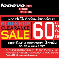 นอกจากนี้เลอโนโวยังได้จัดมหกรรมสินค้า Blueshop Clearance Sale ลดสูงสุด 60% ในงาน สำหรับคอมพิวเตอร์กลุ่มโน๊ตบุ๊คและออลอินวันพีซี อาทิ โน๊ตบุ๊ค Lenovo Y410P, Lenovo Z500, Lenovo S410p, Lenovo G400, Lenovo G480 และออลอินวันพีซี รุ่น Lenovo A520 และ Lenovo C340 ถึงก่อนมีสิทธิก่อน สินค้ามีจำนวนจำกัด สอบถามข้อมูลด้านผลิตภัณฑ์ที่ http://lenovothailand.com/ โทร. 02-689-6451 หรือ โทรฟรีที่ 1800 060 066