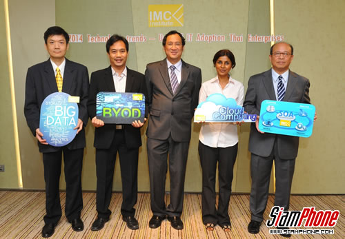 สถาบัน IMC จัดแถลงข่าว “มองเทรนด์ไอทีปี 2557 และเตรียมธุรกิจไทยพร้อมรับมือ 4 กระแสเทคโนโลยี” - "2014 Technology Trends - Urge of IT Adoption in Thai Enterprises" เตรียมความพร้อมให้วงการไอทีปรับตัวเข้าสู่ AEC พร้อมชี้เทรนด์ไอทีใหม่ที่เปลี่ยนโลก เล็ง 4 กระแสหลักที่เปลี่ยนเกมธุรกิจในระดับเอนเทอร์ไพรซ์ระดับโลกที่กระทบตรงถึงไทย ทั้งในด้านนโยบายและตลาดเทคโนโลยีสารสนเทศ เตือนทุกฝ่ายตระหนักในความสำคัญและเร่งปรับตัว