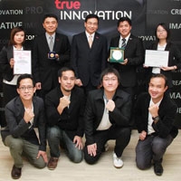 บมจ. ทรู คอร์ปอเรชั่น โดย ดร.วิริยะ อุปัติศฤงค์ ผู้อำนวยการกลุ่มด้านวิจัยและพัฒนา นายพิชิต ธันโยดม หัวหน้าคณะผู้บริหารด้านการพัฒนาเทคโนโลยีสารสนเทศ และ ดร.ธีระพล ถนอมศักดิ์ยุทธ รองผู้อำนวยการและหัวหน้าศูนย์นวัตกรรม พร้อมทีมงาน ร่วมฉลองความสำเร็จ ในโอกาสที่กลุ่มทรู ได้รับรางวัลเหรียญทอง ประเภทซอฟท์แวร์ และเทคโนโลยีการสื่อสาร จากการนำเสนอผลงาน “ออทิสติก แอพพลิเคชั่น” ในงาน The 42nd International Exhibition of Inventions, Geneva 2014