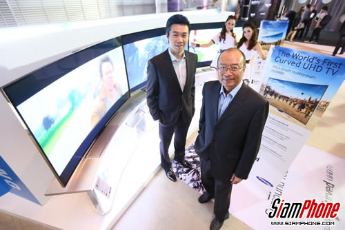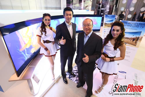 นายอัศวิน ชูสถาพรกุล ผู้จัดการอาวุโสธุรกิจภาพและเสียง บริษัท ไทยซัมซุง อิเลคโทรนิคส์ จำกัด กล่าวว่า "ในปีนี้ซัมซุงเตรียมเปิดตัว ซัมซุง ยูเอชดี ทีวีจอโค้ง ในขนาด 55 และ 65 นิ้ว ราคาเริ่มต้นที่ 129,990 บาท ซึ่งเป็นผลิตภัณฑ์ไฮไลท์ของปีนี้ โดดเด่นด้วยเทคโนโลยีจอโค้ง (Curved Panel) ที่ขยายมุมมองการรับชมให้กว้างยิ่งขึ้น เพิ่มมิติความลึกให้ความรู้สึกสมจริง เต็มอิ่ม ช่วยให้ผู้ชมได้รับมุมมองที่ดีที่สุดในทุกๆ ตำแหน่งการรับชม เทคโนโลยีรายละเอียดภาพสูงสุดระดับอัลตร้าเอชดี (Ultra High Definition) บนจอภาพขนาดใหญ่ที่ให้รายละเอียดภาพได้สูงกว่า 8.0 ล้านพิกเซล อีกทั้งยังมีคุณสมบัติของสมาร์ททีวีอย่าง SMART Interaction การสั่งงานด้วยท่าทาง ด้วยเสียงและการจดจำใบหน้า รวมถึงแอพพลิเคชันบนสมาร์ททีวี และ Evolution Kit ชิพอัจฉริยะที่สามารถอัพเดทสมาร์ททีวีให้ใหม่และทันสมัยอยู่เสมอ รวมถึงรองรับระบบดิจิตอลทีวีด้วย Digital TV Tuner คุณภาพสูงโดยไม่ต้องเพิ่มกล่องรับสัญญาณภายนอกอีกด้วย”