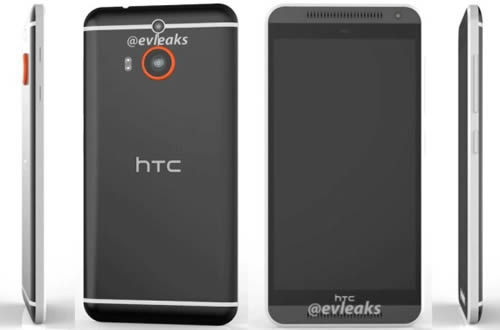 จากภาพที่หลุดออกมาจะเห็นว่าที่ด้านหลังมีกล้องคู่ duo Camera เช่นเดียวกันกับที่พบใน HTC One (M8) แต่ที่น่าสังเกตคือส่วนของเลนส์กล้องหลักจะครอบทับด้วยวงแหวนสีส้มสดใส ซึ่งเป็นดีไซน์การออกแบบที่ค่อนข้างแปลกตาไม่ใช่น้อย