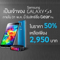 Samsung มอบสิทธิพิเศษให้กับลูกค้า เพียงคุณซื้อ Samsung Galaxy S5 ภายใน 31 พ.ค. นี้ รับสิทธิ์ซื้อ Gear Fit ได้ในราคา 50% จากราคาปกติ 5,900 บาท เหลือเพียง 2,950 บาท