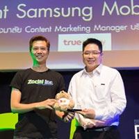 โดย นายจักรพงษ์ คงมาลัย ผู้จัดการฝ่ายการตลาดคอนเทนต์ ธุรกิจโทรคมนาคมและไอที บริษัท ไทยซัมซุง อิเลคโทรนิคส์ จำกัด เป็นตัวแทนรับรางวัล ณ โรงละครอักษรา คิง เพาเวอร์ เมื่อเร็วๆ นี้