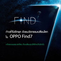 OPPO ประเทศไทยเตรียมเผยโฉมนวัตกรรมสุดล้ำแห่งปี OPPO Find 7 สมาร์ทโฟนที่มาพร้อมนวัตกรรมตัวล่าสุดที่จะพร้อมสร้างความตื่นตาตื่นใจกับคุณในทุกรายละเอียด ไม่ว่าจะเป็นออกแบบลวดลายโค้งมนสุดโดดเด่นสะดุดตา พร้อมใช้วัสดุไทเทเนียมอลูมิเนียมแบบเดียวกับที่ใช้ผลิตเครื่องบินและยานอวกาศพร้อมด้วยลายเคฟร่าสุดหรูหรา ให้ความพรีเมี่ยมเหนือระดับทุกครั้งที่คุณหยิบขึ้นมาใช้งาน