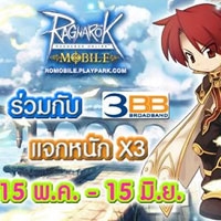 PlayPark ผู้ให้บริการเกมออนไลน์อันดับ 1 ในเครือ Asiasoft และเป็นผู้ให้บริการเกม Ragnarok Mobile สุดยอดเกมออนไลน์ MMORPG บนมือถือที่แรงที่สุดในขณะนี้ ได้ร่วมมือกับ 3BB เครือข่ายอินเตอร์แรงที่สุดของประเทศไทย จัดแคมเปญ “3BB สดแรง เล่น ROMOBILE สุดมันส์” เอาใจคอเกมเมอร์กับการแจก..!! ไอเทมสุดเทพ x3 อย่าง “Lucky Box” ไอเทมที่ไว้ใช้อัพเดทชุดเกราะ อาวุธต่างๆ จำนวน 3 กล่อง เพื่อให้ชาว RO เอาไปเปิดสุ่ม ลุ้นรับไอเทมพิเศษมากมาย โอกาสและโปรโมชั่นดีๆ ที่จะคืนกำไรให้กับชาว RO ไม่ได้มีมาบ่อยๆ ห้ามพลาดกันเด็ดขาด
