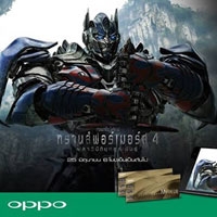 OPPO ร่วมกับ Transformer จัดกิจกรรมกิจกรรมสุดิ่งใหญ่ให้แฟนของ OPPO และ Transformers ได้ร่วมเล่นเกมส์ OPPO Transformers : Age of Extinction (ทรานส์ฟอร์เมอร์ส 4 มหาวิบัติยุคสูญพันธุ์) ลุ้นชิงสมาร์ทโฟนสุดล้ำหน้าจอ 2k ตัวแรกของไทย OPPO Find 7 จำนวน 1 รางวัล และบัตรชมภาพยนต์ทั้งหมด 50 รางวัล รางวัลละ 2 ใบ