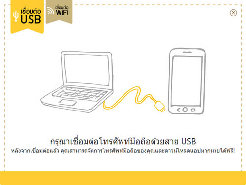 เมื่อเชื่อมต่อพีซีกับสมาร์ทโฟนผ่านสาย USB หรือ Wi-Fi จะสามารถจัดการโทรศัพท์และดาวน์โหลดแอพพลิเคชั่นมากมายผ่านทางเครื่องพีซี (ดาวน์โหลดผ่านมือถือแบบที่แนะนำในตอนต้นก็ได้เช่นกัน)