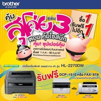 บริษัท บราเดอร์ คอมเมอร์เชี่ยล (ประเทศไทย) จำกัด จัดโปรโมชั่นแรงๆ “สุโค่ย ซีชั่น 3” ตอน “คุ้มไซส์บิ๊ก” ที่มอบความคุ้มซุปเปอร์คุ้มให้แก่ลูกค้าบราเดอร์ เมื่อซื้อเครื่องพิมพ์เลเซอร์มัลติฟังก์ชั่น ขาว-ดำ รุ่น DCP-7060D, MFC-7360, MFC-7470D, MFC-7860DW หรือเครื่องพิมพ์ LED เลเซอร์สี HL-3150 CDN, HL-3170 CDW, HL-4150 CDN รุ่นใดก็ได้ 1 เครื่อง รับฟรี! เครื่องพิมพ์เลเซอร์ขาว-ดำ HL-1110 ราคา 1,690 บาท อีก 1 เครื่องทันที