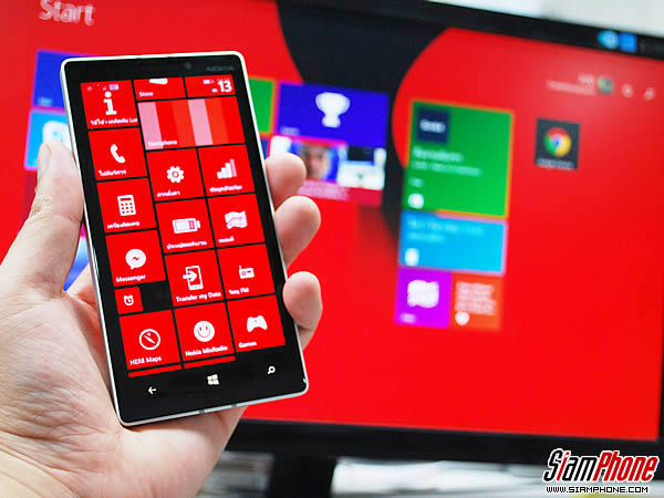 ยกตัวอย่างเช่น ถ้าเปลี่ยนสีพื้นหลัง Tiles ของสมาร์ทโฟน Windows Phone 8.1 ให้เป็นสีเขียว สีพื้นหลัง Tiles บนหน้าจออุปกรณ์พีซีและแท็บเล็ตที่ใช้ Windows 8.1 ก็จะเปลี่ยนเป็นสีเขียวตามด้วยทันที