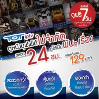 พิเศษ!!! สำหรับสมาชิกทีโอที ไอพีทีวี สามารถขอรับสิทธิ์ทดลองชมฟรี 7 วัน ตั้งแต่วันนี้ - 30 กันยายน 2557 ที่ศูนย์บริการทีโอทีทุกสาขาทั่วประเทศ รายละเอียดเพิ่มเติม โทร. 02 500 1111 หรือ www.totiptv.com