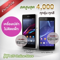 AIS Online Store นำ Sony มาเสนอ ราคา พิเศษ 2 รุ่น โดยลดสูงสุด 4,000 บาท และสามารถซื้อเป็น เครื่องเปล่าได้ โดยไม่ติดแพ็ค