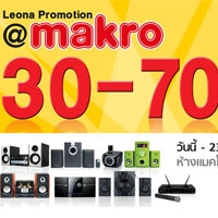 Leona (ลีโอน่า) ผู้นำเข้าและจัดจำหน่ายเครื่องเล่นดีวีดี ชุดโฮมเธียร์เตอร์ ลำโพง และเครื่องใช้ไฟฟ้าด้านความบันเทิงภายในบ้าน จัดลดสินค้าราคาพิเศษกลุ่มเครื่องเสียงทั้งรุ่นใหญ่และรุ่นเล็ก เพื่อเป็นการคืนความสุขให้ลูกค้าทุก ๆ ท่าน ‘Leona Promotion @ Makro 30-70%’ เน้นเครื่องใช้ไฟฟ้ากลุ่มเครื่องเสียง ลำโพง และไมโครโฟน กว่า 10 รุ่น