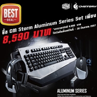 CM Storm by CoolerMaster ผู้ผลิตสินค้าเกมมิ่งเกียร์ให้กับลูกค้าทั่วโลก พวกเรามุ่งมั่นพัฒนาเทคโนโลยีกับโปรดักช์ จำพวกเมาส์ คีย์บอร์ด หูฟังและอุปกรณ์ต่างๆ จัดโปรโมชั่นพิเศษสำหรับชาวเกมเมอร์ เมื่อซื้อ CM Storm Aluminum Series set ประกอบด้วย CM Storm Mech คีย์บอร์ด PULSE-R หูฟัง และ Reaper เมาส์จากราคาปกติ 9,900 บาทเหลือเพียง 8,590 บาทเท่านั้น