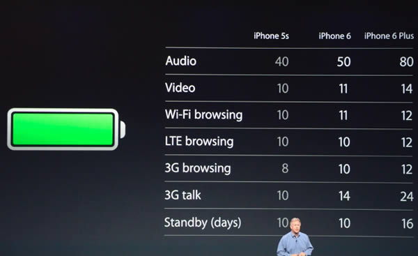 9. อย่างไรก็ตามการเปิดตัวของ iPhone 6 ที่ผ่านมาไม่มีการเปิดเผยรายละเอียดของแบตเตอรี่แต่อย่างใด แต่ก็มีข้อมูลออกมาว่าจะสามารถใช้งาน 3G ได้นาน 14 ชั่วโมงและ 12 ชั่วโมงสำหรับ LTE พร้อมกับ Standby ได้นาน 10 วันจึงอาจทำให้เห็นได้ว่าการมาของสมาร์ทโฟนรุ่นนี้อาจมีแบตเตอรี่ที่มีความจุไม่มากนัก