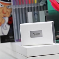 Apacer B120 มีขนาด 95 x 63 x 23 มิลลิเมตร นํ้าหนัก 182 กรัม ใช้แบตเตอรี่ประเภท Li-Ion มีอัตราการคายประจุไฟตํ่า