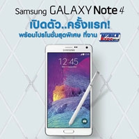 ซัมซุง กาแลคซี่ โน้ต 4 สมาร์ทโฟนจากตระกูลกาแลคซี่ โน้ตรุ่นล่าสุด ที่มากับดีไซน์ที่สวยงามพรีเมี่ยมพร้อมอัดแน่นด้วยสุดยอดนวัตกรรมสุดล้ำ โดยเฉพาะปากกาอัจฉริยะ S Pen ที่ช่วยให้การใช้งานสะดวกสบายยิ่งขึ้น พร้อมกล้องหน้าความละเอียดสูงถึง 3.7 ล้านพิกเซล พร้อมโหมดถ่ายภาพแบบ Wide Selfie มุมกว้าง 120องศา หน้าจอ Quad HD Super AMOLED ขนาด 5.7 นิ้ว เพิ่มความคล่องแคล่วในการใช้งาน Multi-window พร้อมให้คุณจับจองเป็นเจ้าของก่อนใครประเทศไทย ในราคา 24,900 บาท (จากราคาเต็ม 25,900 บาท ณ พื้นที่พิเศษห้องบอลรูม ภายในงาน Thailand Mobile Expo 2014 Showcase ระหว่างวันที่ 2 - 5 ตุลาคมนี้ 4 วันเท่านั้น กับข้อเสนอสุดฮ็อตที่สาวกกาแลคซี่ โน้ต ห้ามพลาดด้วยประการทั้งปวง