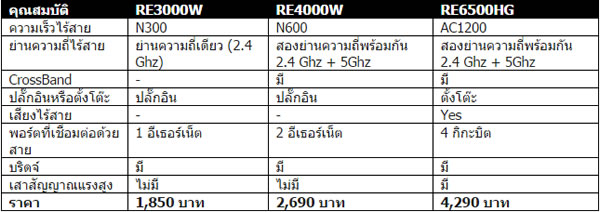 ตารางด้านล่างนี้แสดงรายละเอียดเบื้องต้นเกี่ยวกับอุปกรณ์ขยายสัญญาณรุ่นใหม่ของลิงค์ซิส ซึ่งรองรับการใช้งานหลากหลายรูปแบบสำหรับผู้ใช้ตามบ้าน ส่วนรายงานด้านเทคนิคเกี่ยวกับอุปกรณ์ขยายสัญญาณสามารถดาวน์โหลดได้ที่นี่