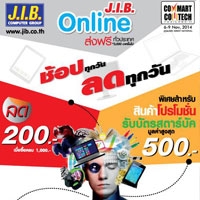 พร้อมกันนี้ยังมีโซน J.I.B.Online ที่ ให้ลูกค้าเข้าถึงสินค้ากว่า 3,000 ผ่านช่องทาง www.jib.co.th ที่สามารถจัดส่งสินค้าถึงมือลูกค้าในวันถัดไป พร้อมทั้งความสะดวกในการเลือกชำระค่าสินค้าผ่านบัตรเครดิต ภายใต้มาตรฐานความปลอดภัยระดับสากล และสำหรับลูกค้าที่ซื้อสินค้าผ่านทาง J.I.B. Online รับฟรี บัตรกำนัล สตาร์บัคส์ มูลค่าสูงสุดกว่า 500 บาท (เฉพาะสินค้าที่ร่วมรายการ) พร้อมทั้งโปรโมชั่นสินค้าราคาลดพิเศษเฉพาะการซื้อผ่านช่องทาง Online เท่านั้น