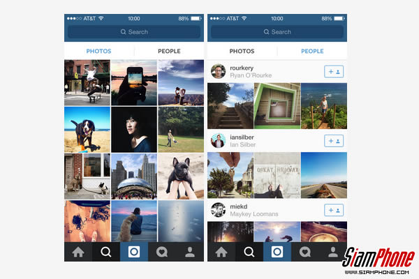 นอกจากนี้ Instagram ยังมีปรับปรุงการค้นหา โดยแบ่งรูปแบบการค้นหาเป็น 2 แบบ คือการค้นหาจากรูป ซึ่งเป็นการค้นหาในรูปแบบเดิม และการค้นหาจากบุคคลเจ้าของภาพ ผู้ใช้จะเห็นเจ้าของภาพและรูปตัวอย่างไปพร้อมๆกัน
