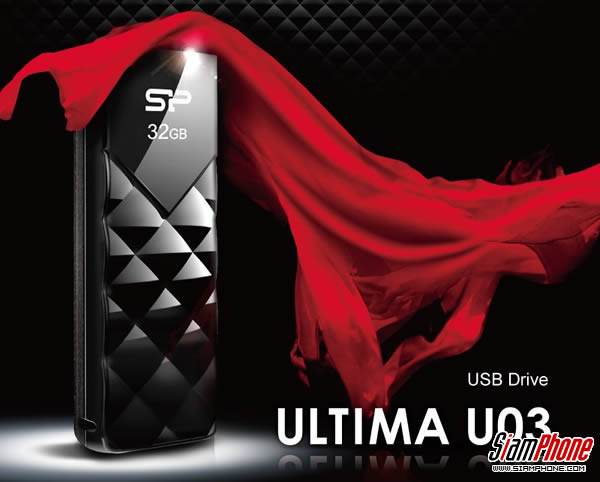 การออกแบบที่หรูหราของ SP Ultima U03 เรียบง่าย แต่คงไว้ซึ่งความคลาสสิค ตัว USB ไดรฟ์มีการออกแบบด้วยลวดลายการตัดเพชร และใช้วัสดุที่มันวาวในส่วนบน ด้านหลังวัสดุมีลวดลายในตัวพร้อมกับปุ่มเลื่อนเปิด-ปิด USB connector เพื่อความง่ายต่อการใช้งานและการจัดเก็บ U03 มีสีดำแบบ mystery black และสีขาวแบบ snowy white เพื่อให้เข้ากับคอลเลคชั่นแฟชั่นของคุณ