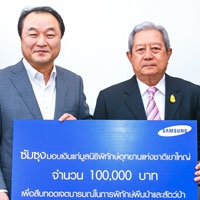 Samsung นำโดย มร. โยง ซอง จอน ประธานบริษัท และ มร.เจสัน อัน ประธานบริหารฝ่ายการเงิน มอบเงินจำนวน 100,000 บาท แก่ พลเอกสุรยุทธ์ จุลานนท์ ประธานกรรมการมูลนิธิพิทักษ์อุทยานแห่งชาติเขาใหญ่ เพื่อร่วมสมทบทุนโครงการอาหารแห้งของอุทยานแห่งชาติเขาใหญ่ เป็นการสร้างขวัญกำลังใจให้แก่พนักงานและลูกจ้างที่ปฏิบัติภารกิจในเขตอุทยานแห่งชาติเขาใหญ่รวมถึงร่วมสืบทอดเจตนารมณ์ในการพิทักษ์ผืนป่าและสัตว์ป่าของมูลนิธิฯ