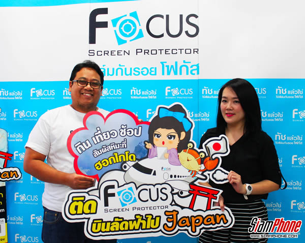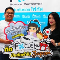 นายอมรศักดิ์ แดงแสงทอง รองประธานกรรมการฝ่ายการตลาด บริษัทดีพลัส อินเตอร์เทรด จำกัด ผู้ผลิตและจัดจำหน่ายผลิตภัณฑ์ฟิล์มกันรอย ภายใต้แบรนด์ Focus มอบรางวัลเที่ยวญี่ปุ่นสุดเอ็กซ์คลูซีฟกับแคมเปญ “ติดโฟกัส บินลัดฟ้าไปเจแปน” ร่วมกินฟรี เที่ยวฟรี 6 วัน 4 คืน
