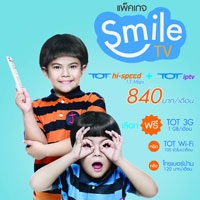 ทีโอที ดันแพ็คเกจ Smile TV คืนความสุขส่งท้ายปลายปีตอกย้ำความเป็นศูนย์รวมการสื่อสารและความบันเทิงของเมืองไทย ด้วยไฮสปีดอินเทอร์เน็ตความเร็ว 13 Mbps. และเพลิดเพลินไปกับ TOT iptv บริการดูทีวีผ่านอินเทอร์เน็ต 116 ช่องรายการผ่าน 3 ช่องทางการรับชม ทั้งโทรทัศน์ คอมพิวเตอร์ และสมาร์ทโฟน/แท็บเล็ต เลือกรับฟรี! อีก 1 บริการจากทีโอที ไม่ว่าจะเป็นทีโอที3G ทีโอที Wi-Fi หรือเลือกโทรเบอร์บ้าน ทั้งหมดเพียง 840 บาท/เดือน สมัครได้แล้วตั้งแต่วันนี้ถึง 31 ม.ค. 58 ที่ศูนย์บริการทีโอทีทั่วประเทศ สอบถามเพิ่มเติม โทร. 02 500 1111