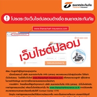 ธนชาตประกันภัย เตือนลูกค้าประชาชนโปรดระวังเว็บไซต์ปลอมจากมิจฉาชีพ ในการซื้อขายกรมธรรม์ออนไลน์ ย้ำควรตรวจสอบและสังเกตชื่อเว็บไซต์ว่าเป็นของบริษัทฯจริง (www.thanachartinsurance.co.th) ก่อนทำรายการธุรกรรมซื้อขายกรมธรรม์ทุกครั้ง
