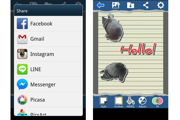 และเมื่อได้ภาพสุดสร้างสรรค์ตามที่ต้องการแล้ว ผู้ใช้สามารถแชร์ภาพ StickIt! ได้หลากหลายช่องทาง เช่น Facebook, Line, Instagram หรือ Twitter เป็นต้น
