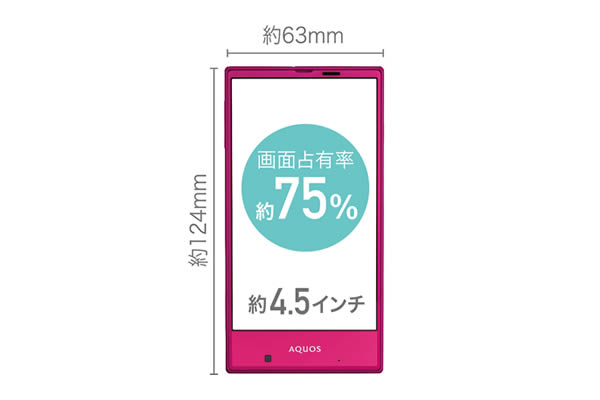 สมาร์ทโฟนรุ่นแรกมีชื่อว่า Aquos mini SHV31 ซึ่งมีดีไซน์ที่เน้นขอบหน้าจอบางเฉียบ โดยจอแสดงผลมีขนาด 4.5 นิ้ว ความละเอียด FullHD 1080p (487ppi), รันแอนดรอยด์ 4.4 KitKat, CPU Snapdragon 801 quad-core 2.3GHz, RAM 2GB, พื้นที่เก็บข้อมูลในเครื่อง 16GB, รองรับ microSD card ความจุสูงสุด 128GB, รองรับ 4G LTE, กล้องหลัง 13MP, และจุดขายสำคัญคือหน้าจอเทคโนโลยี IGZO รุ่นใหม่ของ Sharp ที่เน้นการประหยัดพลังงานโดยสามารถใช้งานได้ 2-3 วันต่อ 1 รอบการชาร์จของแบตเตอรี่ความจุ 2120mAh นอกจากนั้นก็ยังมีคุณสมบัติกันน้ำด้วย