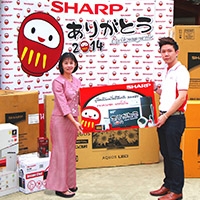 คุณอัครเดช พันธิวานนท์ ผู้จัดการฝ่ายส่งเสริมการขาย กลุ่มผลิตภัณฑ์ไฟฟ้าและอีเล็กทรอนิกส์ บริษัท ชาร์ป ไทย จำกัด ผู้ผลิตและจัดจำหน่ายเครื่องใช้ไฟฟ้า อุปกรณ์สำนักงาน และแผงโซลาร์ชั้นนำของโลก มอบเครื่องใช้ไฟฟ้าชาร์ปซึ่งประกอบด้วย AQUOS LED TV, เครื่องปรับอากาศ, เครื่องฟอกอากาศ, ตู้เย็น, ไมโครเวฟ, เครื่องดูดฝุ่น และเครื่องปล่อยอนุภาคพลาสม่าคลัสเตอร์สำหรับใช้ในรถ ให้แก่คุณพัชรี คงสุวรรณ์ ผู้โชคดีจากจังหวัดลำปาง จากการส่งใบเสร็จซื้อสินค้าชาร์ปมาร่วมชิงโชคใน แคมเปญ “อะริกาโต เปลี่ยนชาร์ปใหม่ให้ใช้ทั้งบ้าน” เพื่อเป็นการตอบแทนและขอบคุณลูกค้าที่ให้การสนับสนุนชาร์ปเป็นอย่างดีเสมอมา