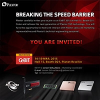 ท่านสามารถพบ Plextor ในงาน CeBIT Hannover ประเทศเยอรมัน ตั้งแต่วันที่ 16 -19 มีนาคม พร้อมการแสดงโซลูชั่นและผลิตภัณฑ์ ที่ Planet Reseller (Hall 15, Booth D21) สำหรับรายละเอียดเพิ่มเติมกรุณาเยี่ยมชมที่ www.plextor.com หรือเฟสบุค www.facebook.com/plextoreurope