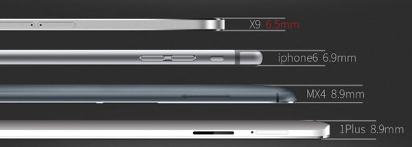 iOcean ผู้ผลิตเครื่องมือสื่อสารสัญชาติจีนเปิดตัวสมาร์ทโฟนน้องใหม่ x9 บนเว็บไซด์ทางการ โดยชูจุดเด่นที่ความบางเพียง 6.5 มิลลิเมตรแต่แข็งแรง ด้วยกรอบตัวเครื่องทำจากวัสดุโลหะคุณภาพสูงและกระจก OGS glasses คลอบทับทั้งสองด้าน (กระจกที่มีเซ็นเซอร์ของระบบสัมผัสรวมเอาไว้จึงช่วยให้ชั้นกระจกหน้าจอมีความบางเบามากขึ้น)