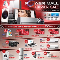 จัดหนักและจัดเต็มกับ 2 แคมเปญแห่งปี ครบครันทุกกลุ่มสินค้าทีวี เครื่องเสียง เครื่องใช้ไฟฟ้า สมาร์ทโฟน แท็บเล็ต และสินค้าไอที คุณภาพในราคาสุดพิเศษ ในงาน “POWER MALL POWER SALE” ตั้งแต่วันที่ 23 เมษายน – 27 พฤษภาคม ศกนี้ ที่ POWER MALL เดอะมอลล์ทุกสาขา ดิ เอ็มโพเรี่ยม และพารากอน ดีพาร์ทเมนต์ สโตร์ และในงาน POWER MALL SALE OF THE YEAR ตั้งแต่วันที่ 29 เมษายน - 10 พฤษภาคมศกนี้ เฉพาะที่ เอ็ม ซีซี ฮอลล์ เดอะมอลล์ งามวงศ์วาน