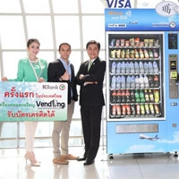 นายสมบูรณ์ ครบธีรนนท์ ผู้จัดการวีซ่า อินเตอร์เนชั่นแนล ประเทศไทย จำกัด นายอมร สุวจิตตานนท์ ผู้อำนวยการฝ่ายอาวุโส ฝ่ายบริหารผลิตภัณฑ์ชำระเงินลูกค้าบุคคลและปริวรรตเงินตราต่างประเทศ ธนาคารกสิกรไทย และ นายวิชิต สัจจะธรรมรัตน์ กรรมการผู้จัดการบริษัท เวนดิ้ง เซอร์วิเซส จำกัด ร่วมเปิดตัวเครื่องจำหน่ายสินค้าอัตโนมัตินวัตกรรมใหม่ (Vending Service) ที่ให้ผู้บริโภคสามารถซื้อสินค้าในตู้ โดยใช้บัตรเครดิต เดบิต และ พรีเพด จากทั่วโลก ซึ่งรวมถึงวีซ่า เพย์เวฟ สำหรับแตะที่เครื่องเพื่อชำระค่าสินค้าได้เป็นครั้งแรกในประเทศไทย