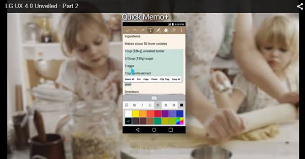LG ได้ออกมายืนยันแล้วว่า UX 4.0 ส่วนติดต่อผู้ใช้เวอร์ชั่นใหม่จะถูกนำมาใช้งานบนสมาร์ทโฟน LG G4 แต่ทางบริษัทก็ยังไม่ได้เผยรายละเอียดของ UX 4.0 ออกมาทั้งหมด ล่าสุด LG ได้ปล่อยคลิปวิดีโอแนะนำฟีเจอร์ใหม่บางส่วนที่อยู่ใน UX 4.0 ตอนที่ 2 ออกมาเพิ่มเติมแล้ว (ชมคลิปตอนแรกได้ที่นี่)