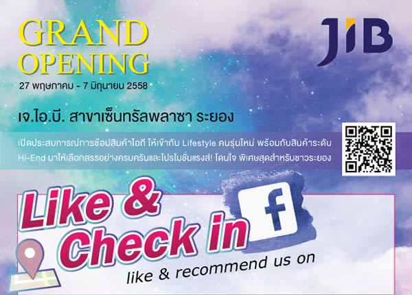 บริษัท เจ.ไอ.บี. คอมพิวเตอร์ กรุ๊ป จำกัด ผู้บริหารร้านค้าปลีกคอมพิวเตอร์และสินค้าไอทีครบวงจรภายใต้ชื่อ เจ.ไอ.บี. (J.I.B.) พร้อมจัด Grand Opening ร้านเจ.ไอ.บี. (J.I.B.) สาขาเซ็นทรัล พลาซ่า ระยอง ซึ่งเป็นสาขาที่ 123 อย่างเป็นทางการ