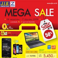 ไม่ปล่อยให้แฟนคลับรอนาน พร้อมแล้วสำหรับงานมหกรรมลดราคาสินค้าไอทีแห่งปี “J.I.B. MEGA SALE 2015” ปีนี้บอสใหญ่บริษัท เจ.ไอ.บี.คอมพิวเตอร์ กรุ๊ป จำกัด ผู้บริหารร้านค้าปลีกสินค้าคอมพิวเตอร์และไอทีครบวงจรภายใต้ชื่อ เจ.ไอ.บี. (J.I.B.) “คุณสมยศ เชาวลิต” สั่งนำสินค้าคุณภาพ แบรนด์ชั้นนำ ทั้ง สมาร์ทโฟน, โน้ตบุ๊ค, เดสท็อปคอมพิวเตอร์, External HDD ยอดนิยม มาหั่นราคาเหลือเพียง 50% ลดสูงสุดถึง 10,000 บาท อาทิ