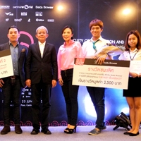 นางชฎากร ธนสุวรรณเกษม ผู้จัดการอาวุโส ฝ่ายปฎิบัติการ ไป่ตู้ ประเทศไทย ถ่ายภาพร่วมกับนักศึกษาจากคณะเทคโนโลยีสารสนเทศและการสื่อสาร มหาวิทยาลัยศิลปากร ผู้ชนะรางวัลจากการประกวดออกแบบธีม (Theme) สำหรับผลิตภัณฑ์ “ไป่ตู้ เบราว์เซอร์” (Baidu Browser)