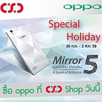 CSC และ OPPO ร่วมกันจัดโปรโมชั่นสุดพิเศษ เปิดจำหน่ายสมาร์ทโฟนตัวล่าสุดอย่าง OPPO Mirror 5 พร้อมนำสมาร์ทโฟนรุ่นอื่นๆ มาจัดโปรโมชั่นร่วม ตั้งแต่วันที่ 30 ก.ค. – 2 ส.ค. 58 นี้