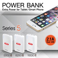 Power Bank Series 5 มีความจุ มาให้เลือกถึง 3 รุ่น คือ PC 512 ความจุ 5500 mAh, PC 513 ความจุ 8250 mAh และ PC 514 ความจุ 11000 mAh