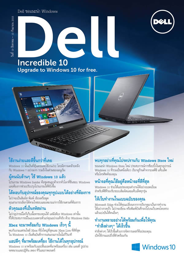 บริษัท เดลล์ คอร์ปอเรชั่น (ประเทศไทย) จำกัด ต้อนรับความล้ำหน้าของระบบปฏิบัติการล่าสุด Windows 10 ด้วยการจัดโปรโมชั่นพิเศษสุด “Incredible 10” ที่คัดสรรโน้ตบุ๊ก 9 รุ่นยอดนิยม