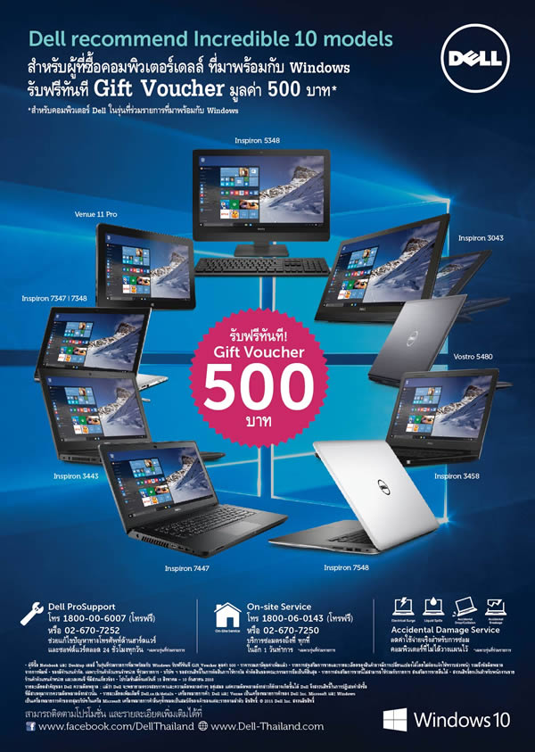 แถมโปรสุดช็อคเมื่อซื้อพร้อม Windows จะได้รับการอัพเกรดเป็น Windows 10 พร้อมรับทันที Gift Voucher 500 บาท ตั้งแต่วันนี้เป็นต้นไป