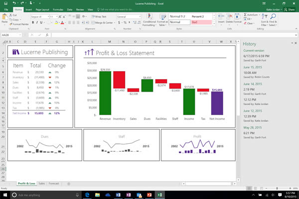 Office 2016 มอบความเฉลียวฉลาดแบบบิลท์อิน (built-in) ที่ช่วยให้คุณทำงานได้รวดเร็วขึ้นและฉลาดขึ้น