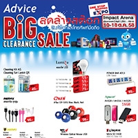 แอดไวซ์ (Advice) ผู้นำธุรกิจร้านค้าไอทีและสมาร์ทโฟน รายใหญ่ มีเครือข่ายครอบคลุมกว่า 350 สาขาทั่วประเทศไทย จัดโปรโมชั่น “BIG Clearance Sale” ลดล้างสต๊อกสินค้าไอทีและโทรศัพท์มือถือสูงสุด 80% ในงาน Thailand One Stop Shopping Expo 2015 ระหว่างวันที่ 10-18 ตุลาคม 2558 ณ อิมแพ็ค อารีน่า เมืองทองธานี ฮอลล์ 1 (ล็อคFB1-FB15)