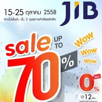 โปรโมชั่นสุดว้าว! ส่งท้ายปลายฝนกับ “J.I.B. MEGA SALE 2015” สุดสัปดาห์นี้ ไม่ควรพลาดนายใหญ่ “สมยศ เชาวลิต” สั่งจัดหนักลดสูงสุดถึง 70% กับสินค้า Clearance ที่คุณภาพเต็ม 100% แต่อยากขายเพียง 30% ของราคาจริงเท่านั้น