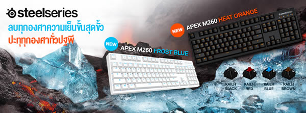SteelSeries ผู้ผลิตชั้นนำระดับโลกของอุปกรณ์การเล่นเกมชั้นนำของโลก นำเสนออาวุธชิ้นใหม่ SteelSeries APEX M260 กับการออกแบบเรียบหรูสวยงามตามสไตล์ของ SteelSeries กับ 2 ดีไซด์ APEX M260 FROST BLUE และ APEX M260 HEAT ORANGE คีย์บอร์ดที่มีคุณภาพสมบูรณ์แบบที่สุดพร้อมวัสดุที่มีคุณภาพทนทาน เป็นตัวเลือกที่คุ้มค่าในตลาดตอนนี้ เหมาะกับการใช้งานของเกมเมอร์ทุกประเภทการเล่นเกมส์