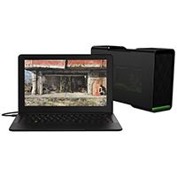 ส่วนที่แบ่งไว้สำหรับเล่นเกมแบบฮาร์ดคอร์ใน Razer Blade Stealth จะปลดล็อกผ่านตัวครอบการ์ดจอภายนอกแบบปลั๊กแอนด์เพลย์ที่เรียกว่า Razer Core สาย Thunderbolt™ 3 (USB-C) เพียงเส้นเดียวใช้ได้ทั้งถ่ายโอนข้อมูลกับชาร์จพลังงานและทั้งหมดเชื่อมต่ออัลตร้าบุ๊กของ Razer ด้วย Razer Core อุปกรณ์ดังกล่าวสามารถใส่การ์ดจอยอดนิยมได้ทุกรุ่นทั้ง AMD® และ NVIDIA® การติดตั้ง GPUs จะใช้เวลาเพียงไม่กี่วินาทีด้วย Razer Core ตัวครอบที่ว่านี้ทำจากอลูมิเนียมที่ทนทาน มีช่องเปิดให้เลื่อนใส่การ์ดจอได้อย่างมีประสิทธิภาพและมีสกรูหนึ่งตัวยึดการ์ดจอ การแก้ปัญหาของ Razer จะช่วยให้ระบบได้รับการป้องกันในอนาคต ในส่วนของการ์ดจอก็สามารถเปลี่ยนเป็นการ์ดจอตัวใหม่ที่มีวางจำหน่ายได้ด้วย