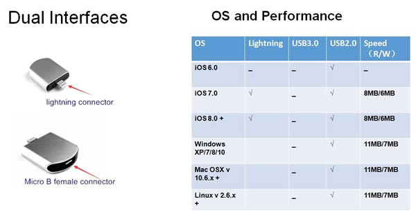 Cepa AU606 MFI Pen Driver เป็น USB แฟลชไดร์ฟ ที่ออกแบบมาเพื่อรองรับการใช้งานกับ iPhone โดยสามารถเชื่อมต่อข้อมูล นำไฟล์เข้า-ออก iPhone ของคุณผ่านแอพพลิเคชั่น PowerDrive โดยตัวแฟลชไดร์ฟจะทำจากอลูมิเนียมน้หนักเบา มีขนาด 39x28x7.5 มิลลิเมตร